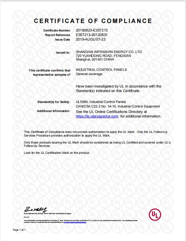 Temel ürünlerimiz sertifikalıdır UL ve diğer uluslararası tanınmış otoriteler.